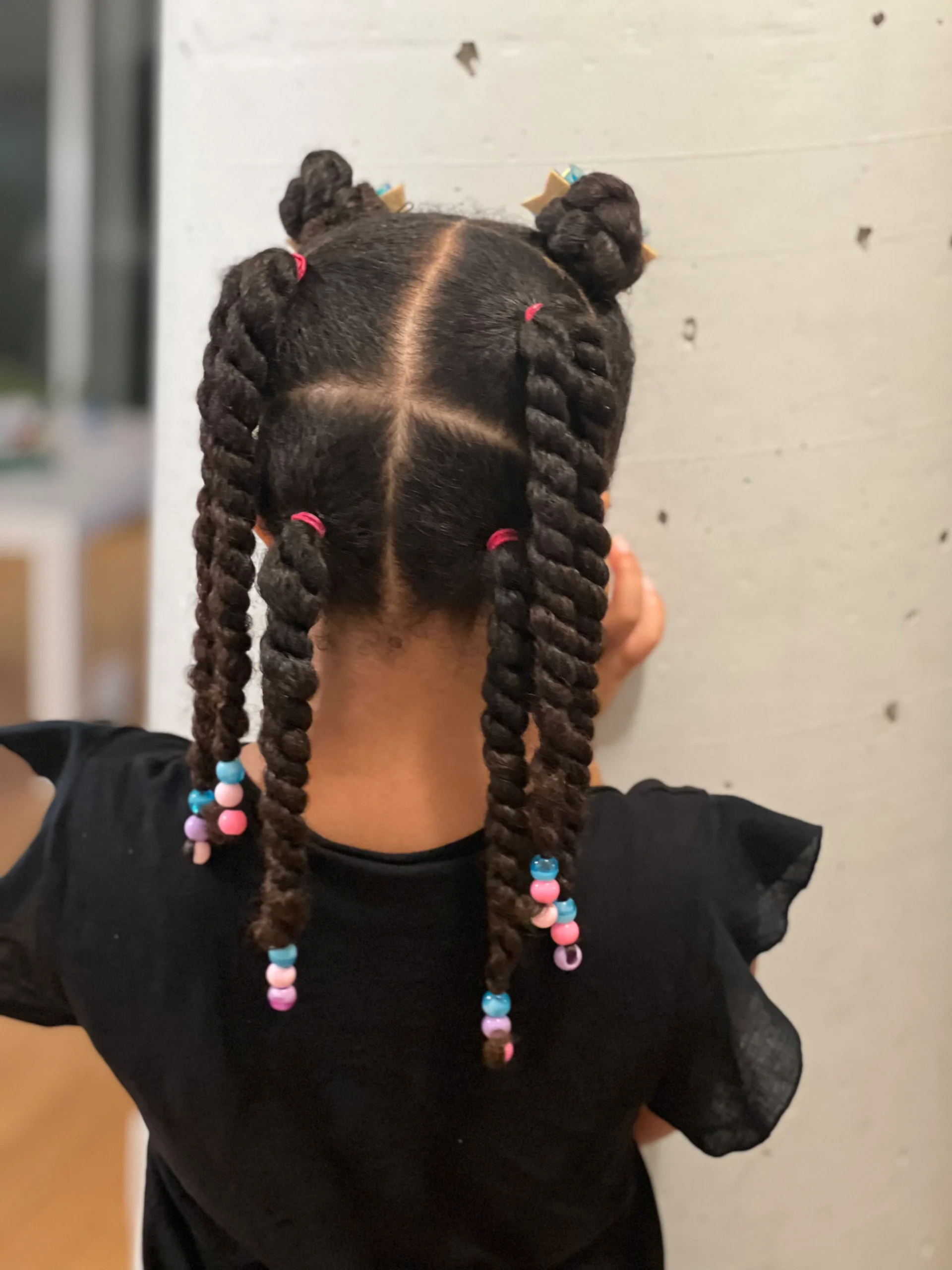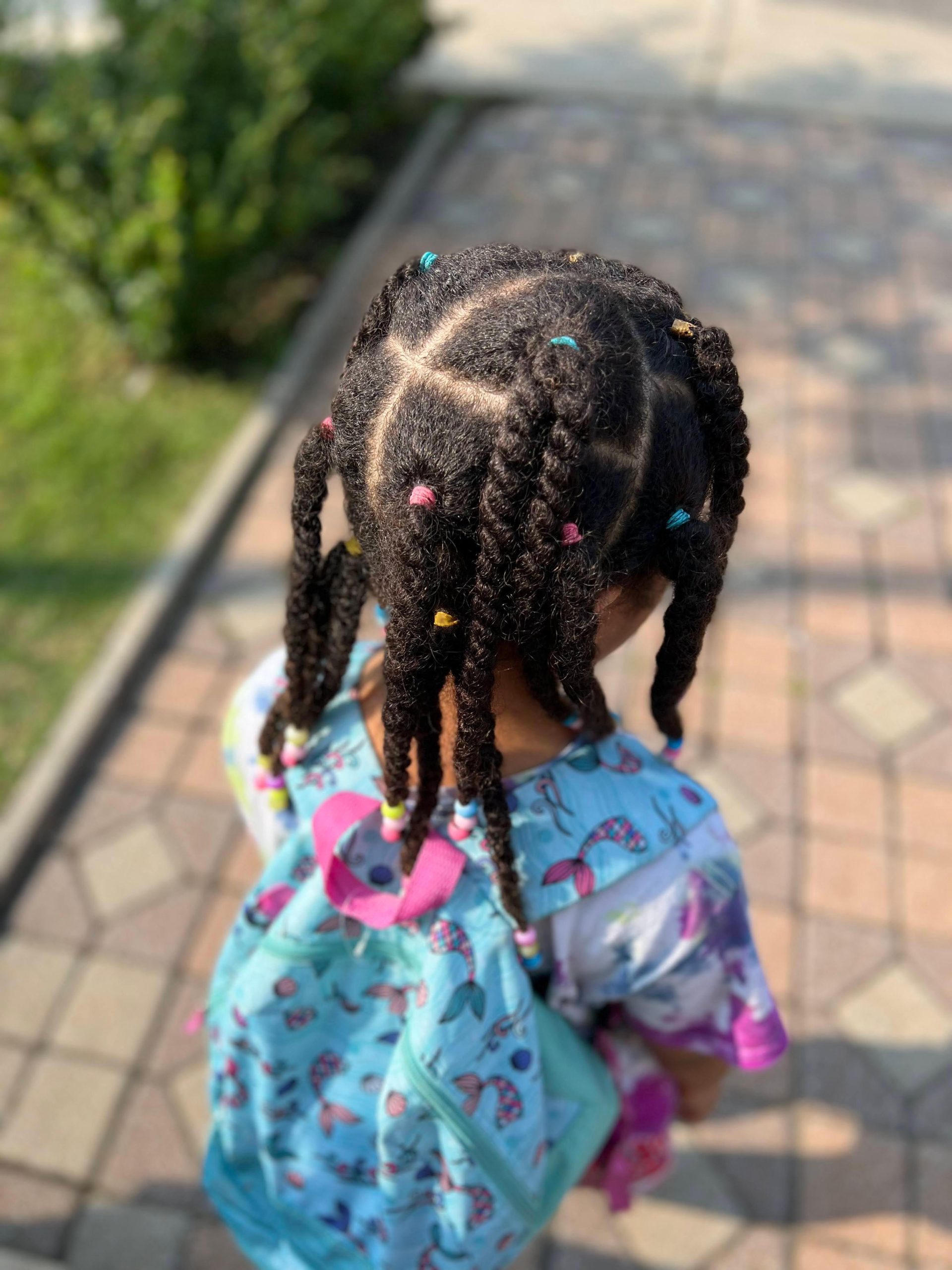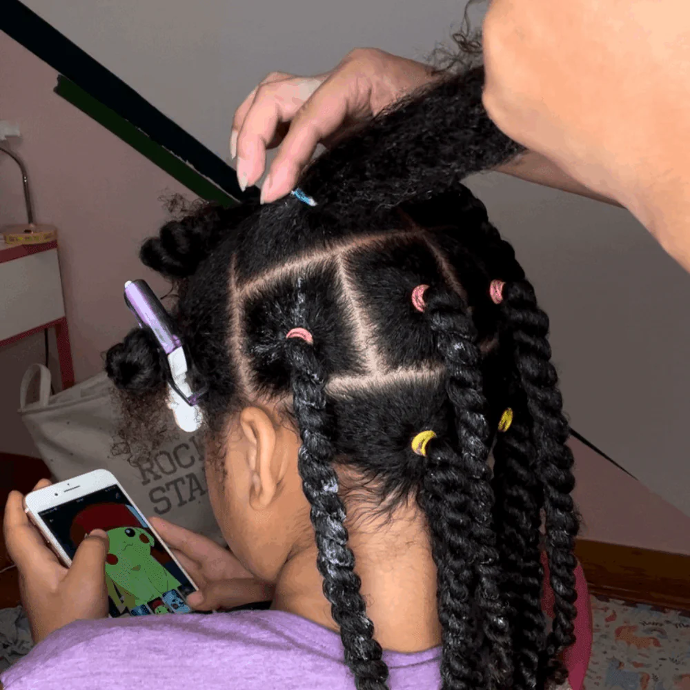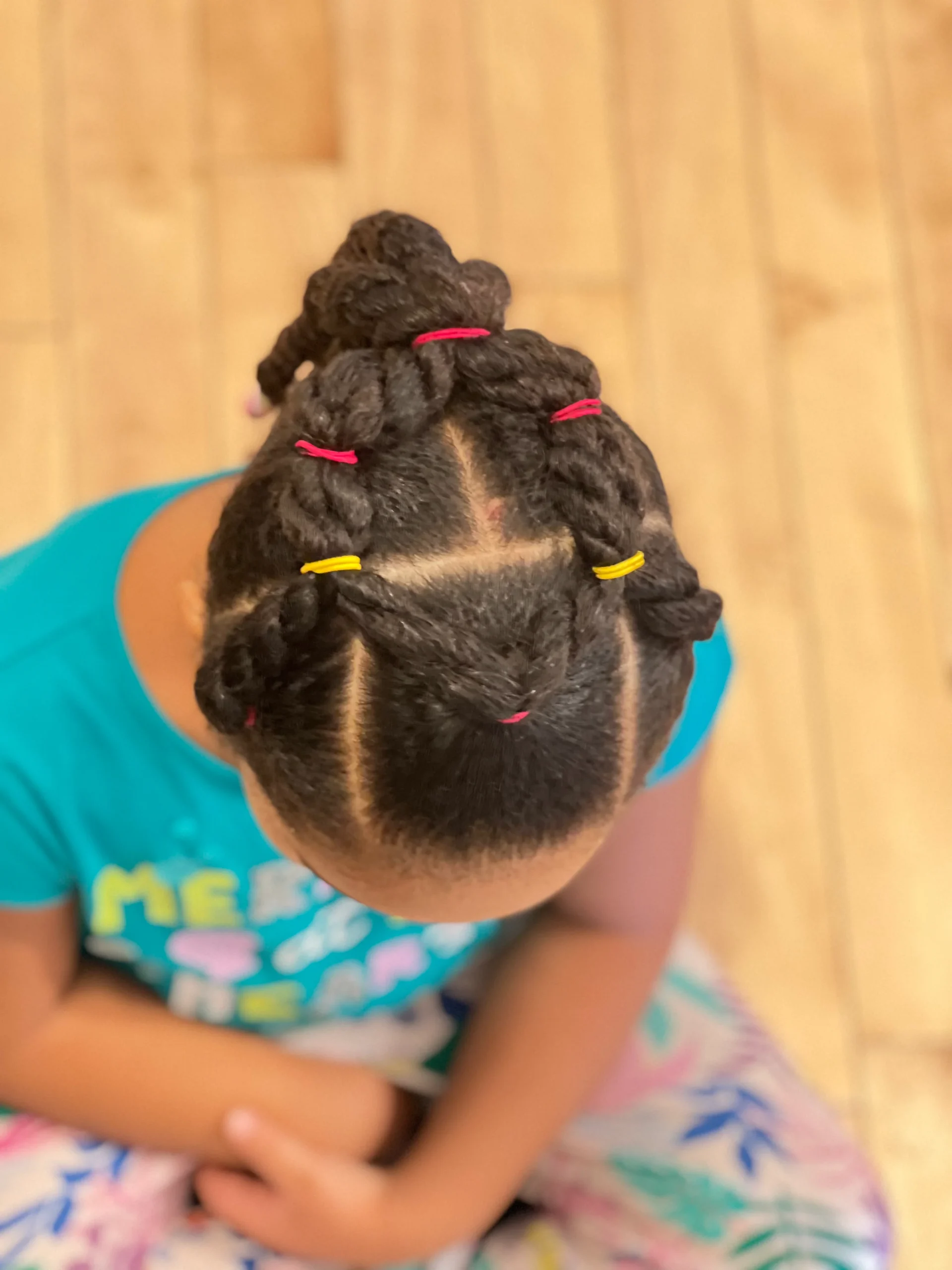 Ces élastiques ont une double fonction, ils permettent avant tout d’attacher des sections moyennes de 5 à 8 cm de circonférence sans abimer les cheveux texturés de votre fille, mais aussi d’apporter une touche de couleur à vos coiffures.