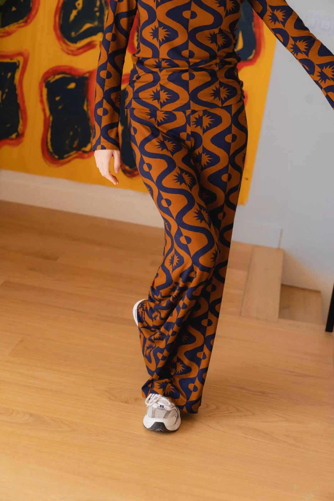 Le pantalon Andrea est tout simplement l’essentiel de votre dressing, été comme hiver. La matière, en jersey fluide et doux, est ultraconfortable. Il se porte aussi facilement avec un blazer pour aller au bureau ou bien avec une jolie maille et des baskets pour un look plus décontracté. Nous aimons tout particulièrement le combo pantalon Andrea/ top Mona du même imprimé pour un effet total look seventies. Le pantalon idéal pour être chic et cosy !