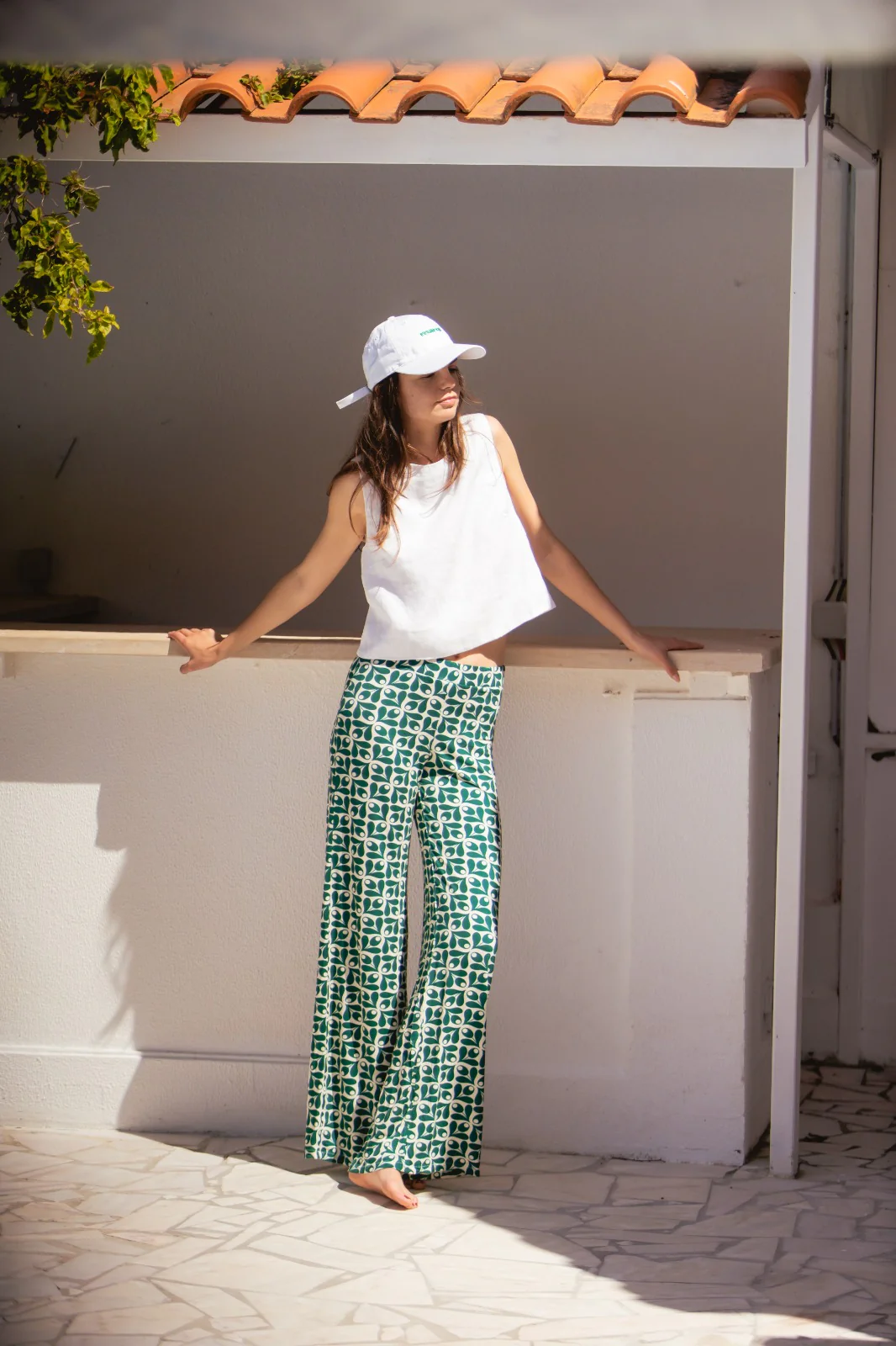 Le pantalon Andrea est tout simplement l’essentiel de votre dressing, été comme hiver. La matière, en jersey fluide et doux, est ultraconfortable. Il se porte aussi facilement avec un blazer pour aller au bureau ou bien avec une jolie maille et des baskets pour un look plus décontracté. Nous aimons tout particulièrement le combo pantalon Andrea/ top Mona du même imprimé pour un effet total look seventies. Le pantalon idéal pour être chic et cosy !