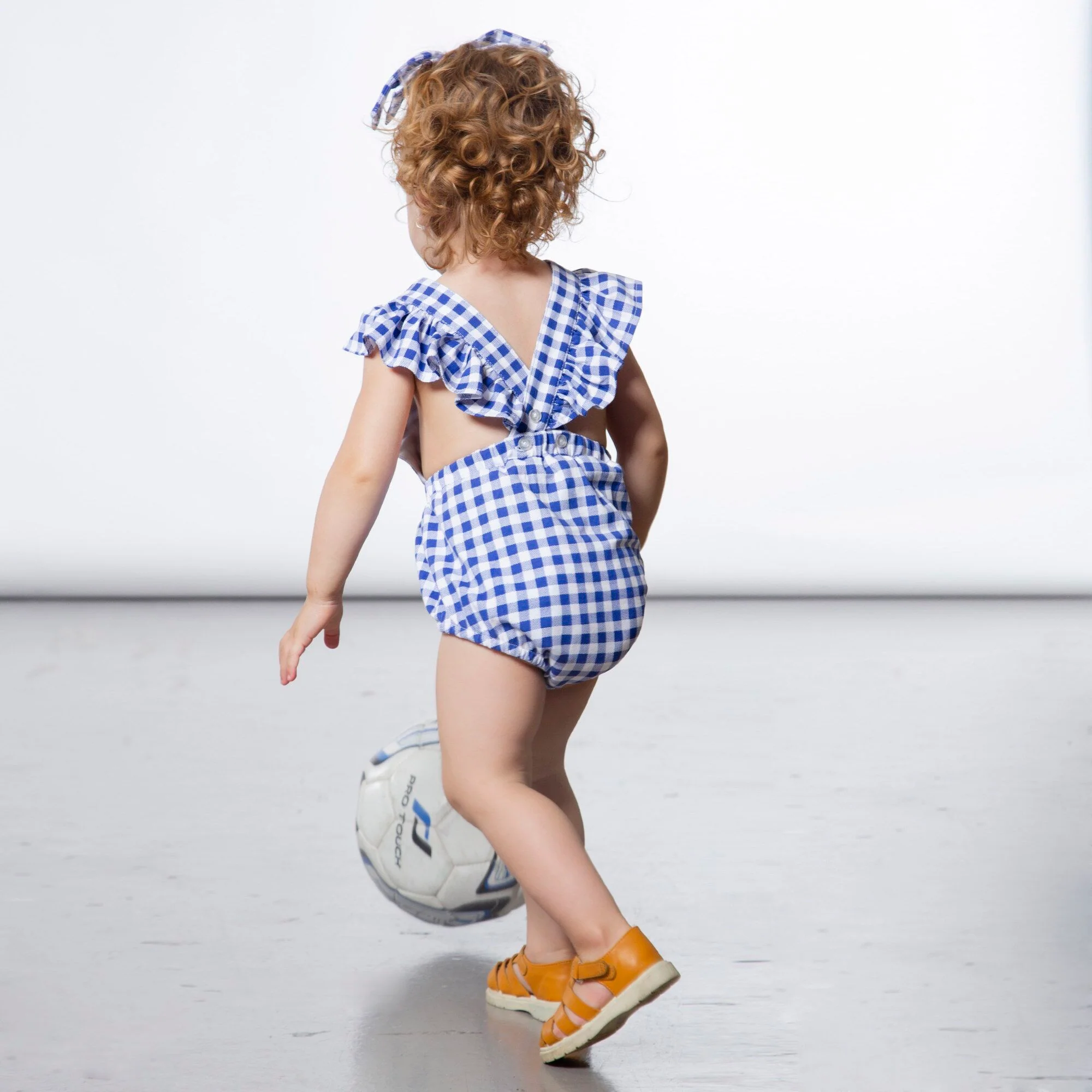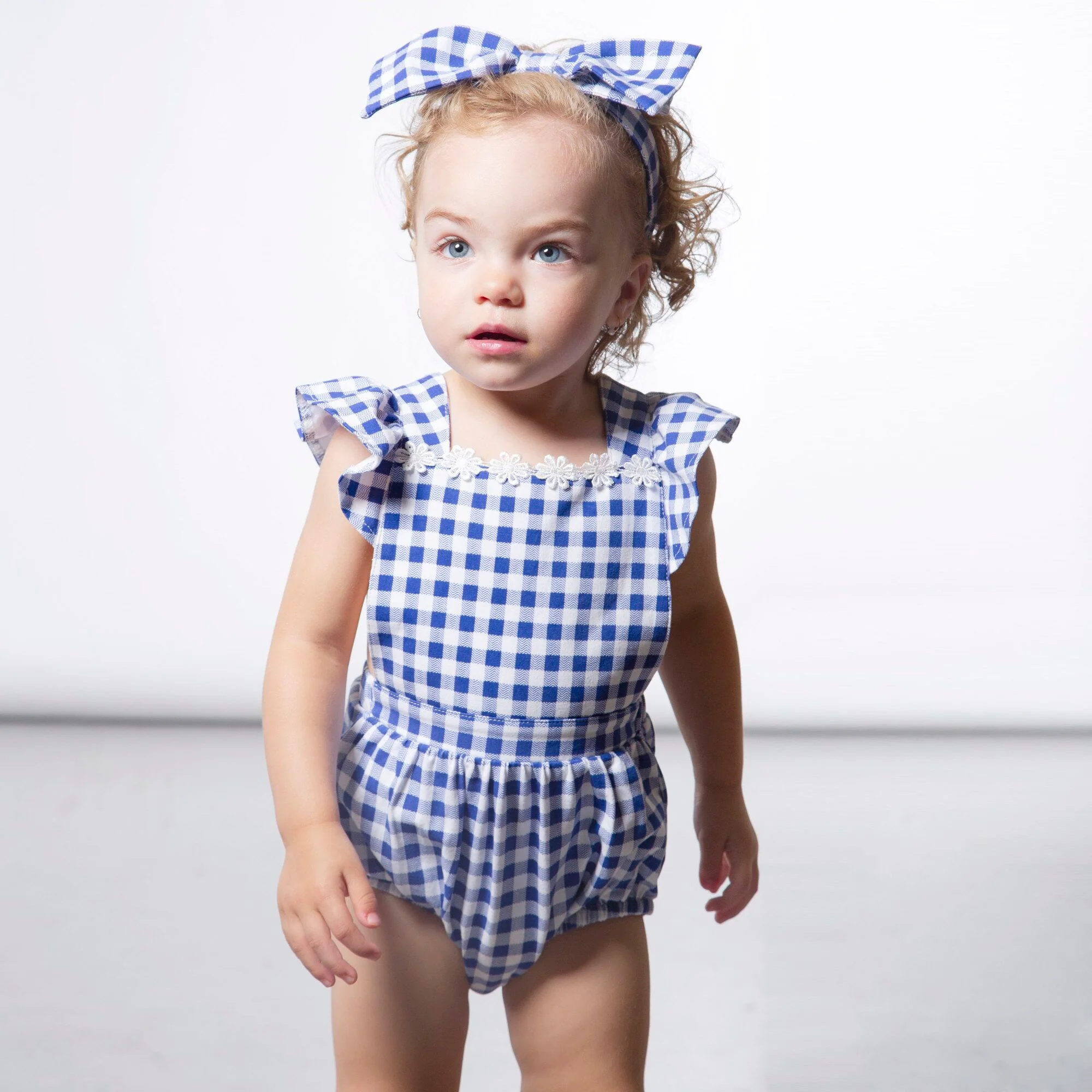 Les marguerites brodées et les manches flottantes font de cette barboteuse un ajout adorable à la garde-robe de toute petite fille. Fabriquée en coton biologique doux, la barboteuse présente un corsage sans manches avec des bretelles à volants qui se boutonnent et s’entrecroisent dans le dos, une encolure carrée et des boutons-pression au bas. Un bandeau à carreaux assorti avec un noeud met la touche finale parfaite à ce look coloré.