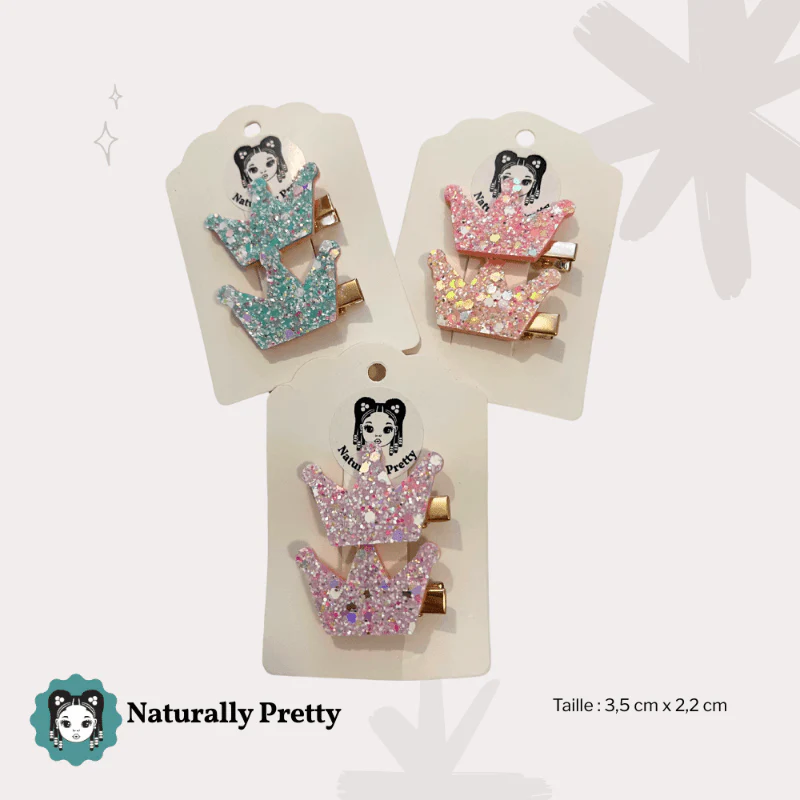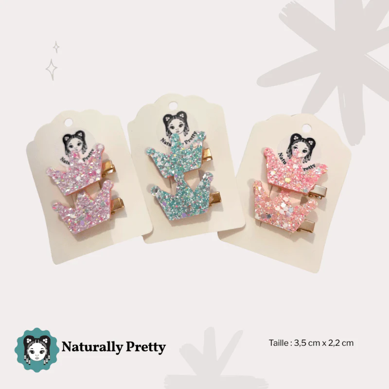 Offrez à votre enfant une touche de magie avec les barrettes couronne pailletées Naturally Pretty.