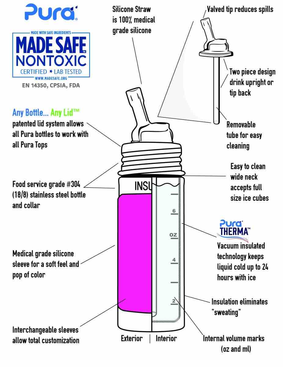 Toutes les bouteilles isolées et non isolées Pura Stainless sont couvertes par une garantie à vie limitée contre les défauts de fabrication pendant la durée de vie de la bouteille. Sauf catastrophe, nous nous attendons à ce que vos bouteilles Pura Stainless vous offrent de nombreuses années de service fidèle, et nous voulons savoir si elles n’ont pas réussi à livrer. Pura Stainless remplacera toute bouteille jugée défectueuse dans le cadre d’une utilisation normale et appropriée.