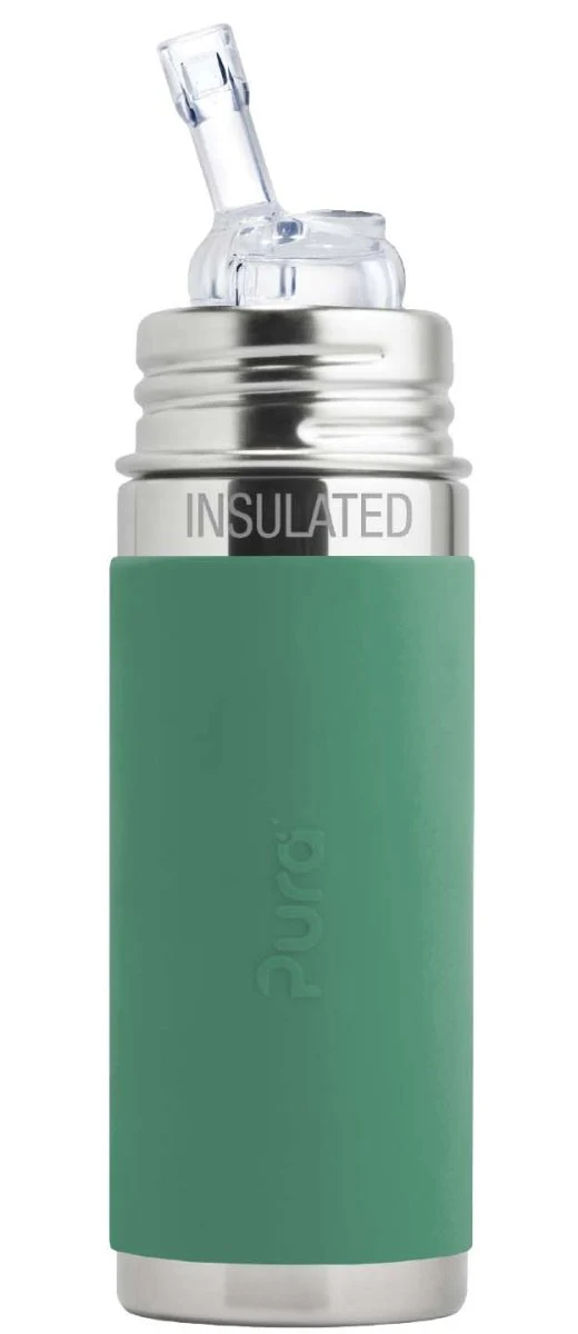 Biberon évolutif isotherme INOX Pura – 260ml – manchon vert menthe – Paille 6m+ – à partir de 6 mois