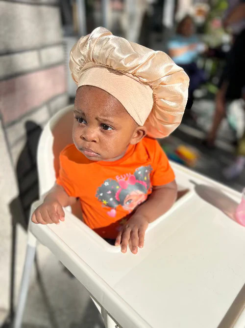 Parce que la santé et la beauté des cheveux de votre enfant méritent le meilleur, même pendant son sommeil. Offrez-lui des nuits paisibles et des cheveux protégés avec ce bonnet incontournable.