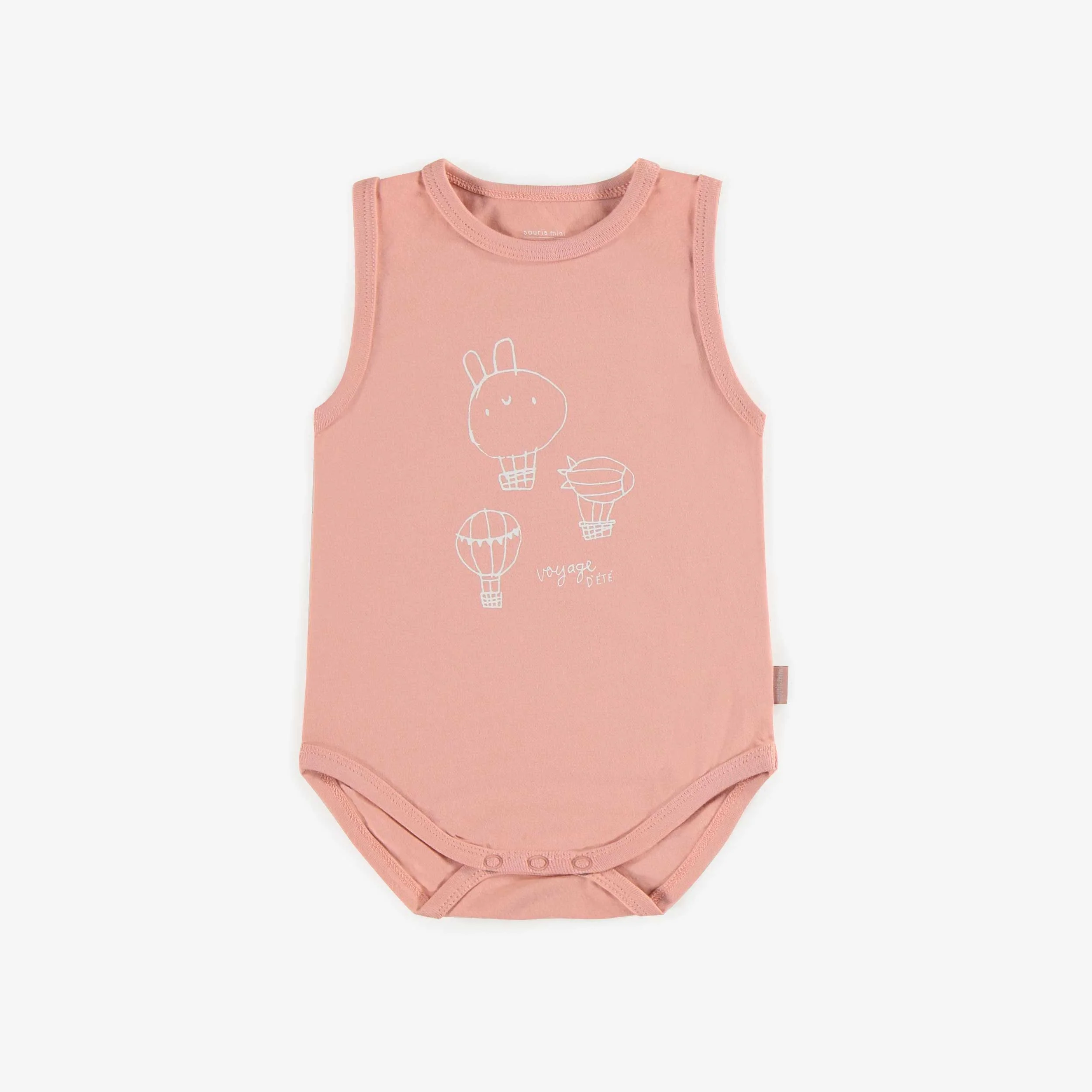 Cache-couche camisole rose pâle avec une illustration de montgolfières en jersey extensible, bébé