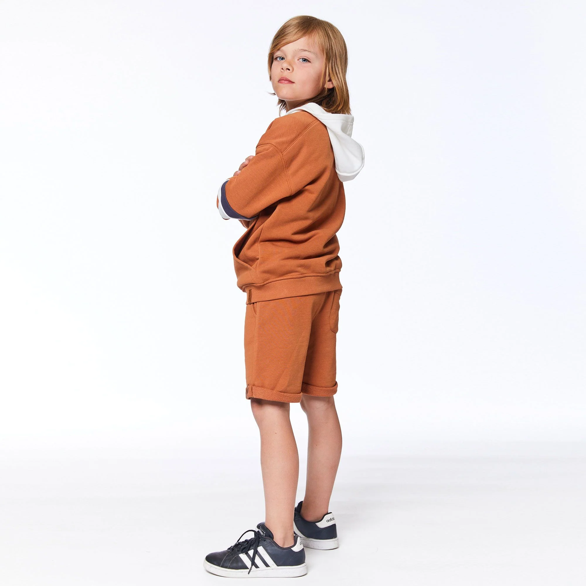 Les bandes sur manches de couleur contraste ajoutent une attitude sportive à notre cardigan à capuche en molleton français caramel. Ce sweatshirt à fermeture éclair sur le devant présente des manches longues, une capuche de couleur contrastée et des poches obliques. C’est la pièce de superposition parfaite pour les journées fraîches de printemps ou les nuits fraîches d’été.