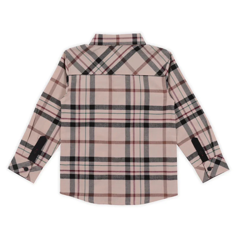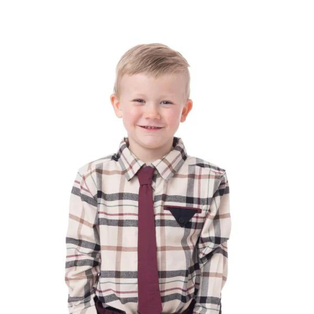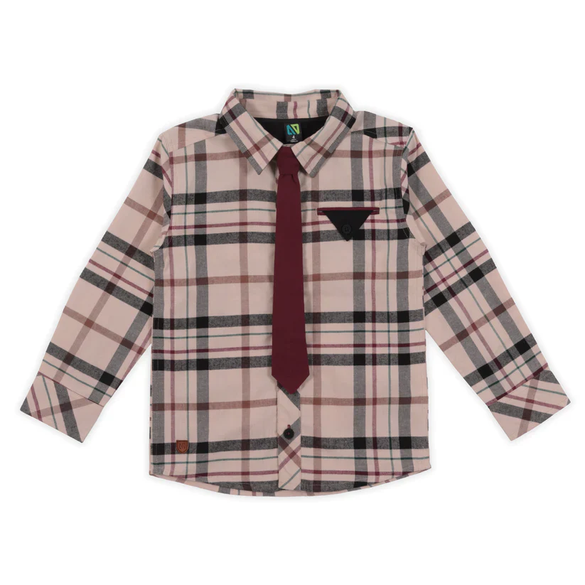 • Chemise en flanelle à carreaux• Détails en popeline unie• Col chemisier• Manches longues• Poignets boutonnés• Fermeture à boutons au-devant• Poche passepoilée au buste• Cravate amovible agencez-le au pantalon noir Faisons la fête pour un look complet