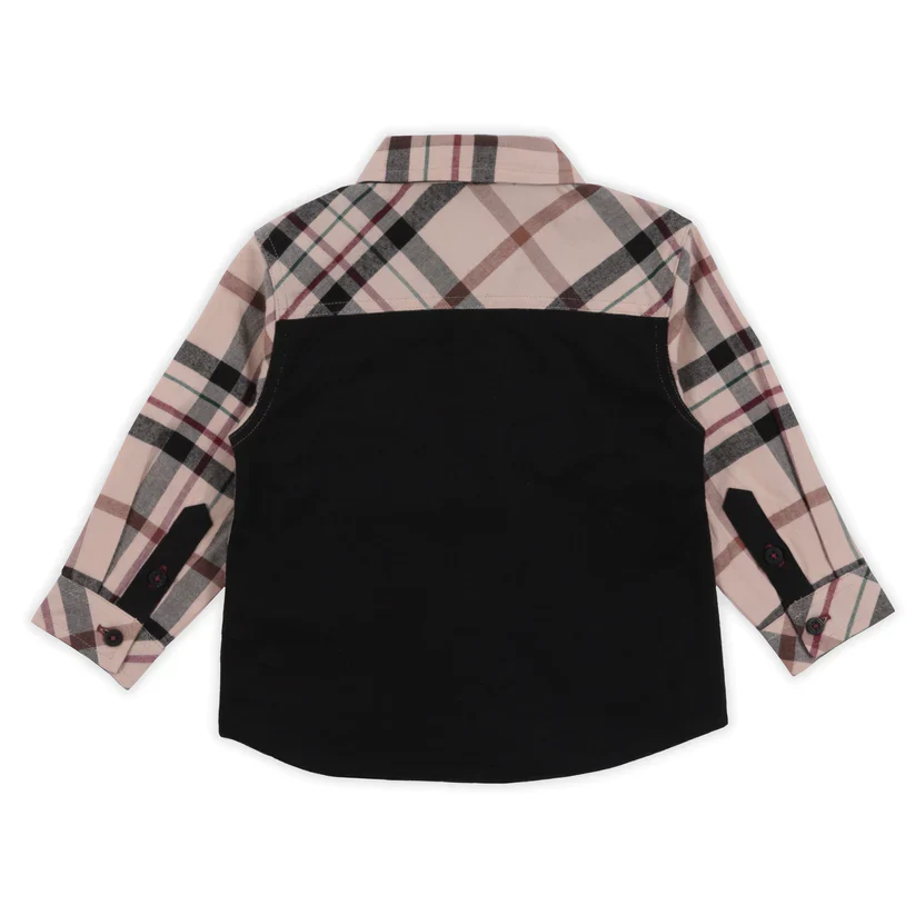 • Chemise en flanelle à carreaux• Détails en popeline unie• Col chemisier• Manches longues• Poignets boutonnés• Fermeture à boutons au-devant• Poche passepoilée au buste• Cravate amovible• Dos en jersey Agencez le au pantalon noir Un, deux, trois, party! pour un look complet