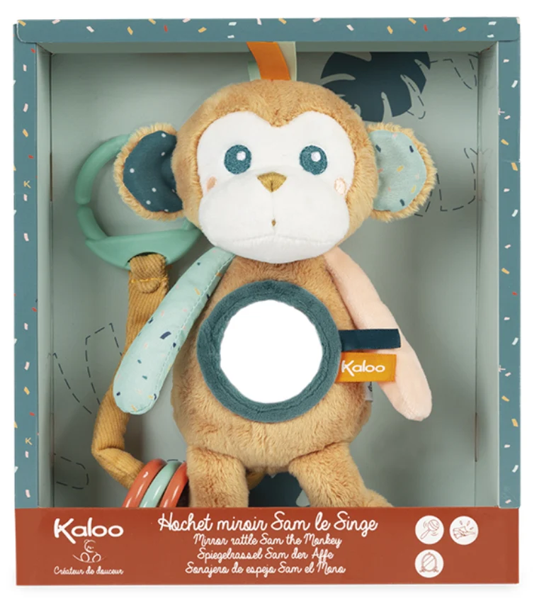 Voici Sam, le singe en version hochet miroir. La tête en haut ou les pattes en l’air, il stimulera les sens de bébé avec son miroir, ses anneaux à attraper mais aussi son hochet intégré et ses bras bruissants. Stimule l’acuité visuelle Stimule l’audition Développe la préhension Papier bruissant Anneaux à attraper Miroir Attache facile […]