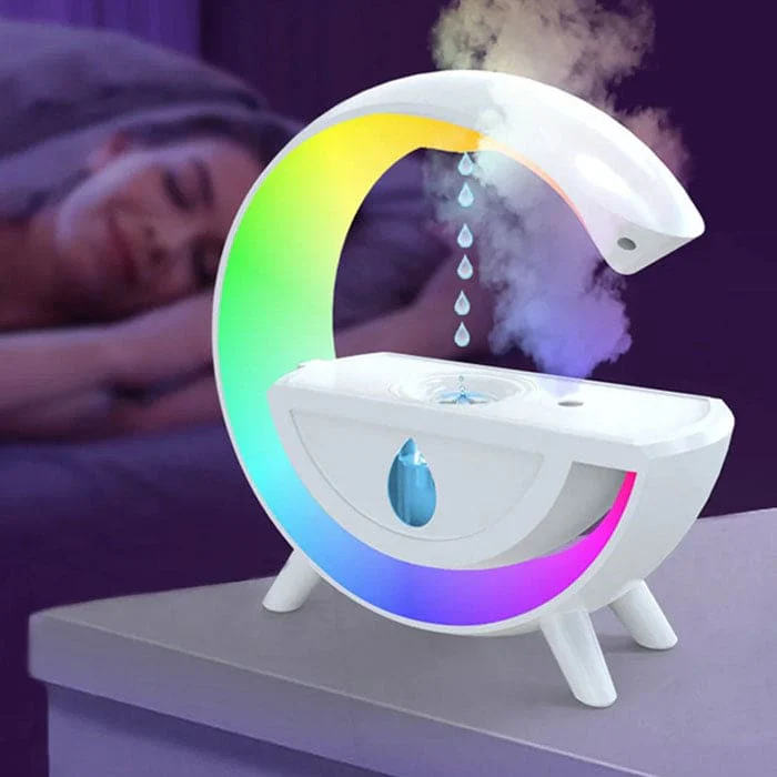 Cet humidificateur unique crée une illusion d’optique captivante de gouttelettes d’eau se déplaçant vers le haut, offrant un effet visuel futuriste. Il aide à soulager le stress de la vie quotidienne et du travail.