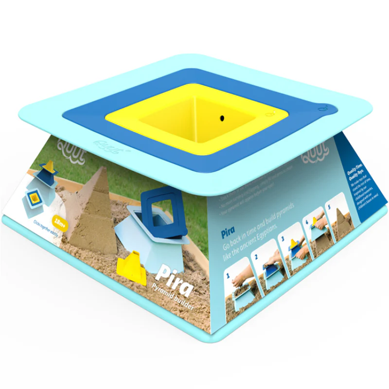 Le jouet de plage pyramide Pira de la marque Quut peut être utilisé au bord de mer, à la neige, dans le jardin… Les possibilités sont infinies ! Il y a plusieurs façons de jouer avec : c’est donc un jouet idéal pour développer l’imagination des petits et les encourager à bouger, expérimenter et inventer.