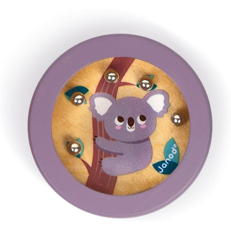 L’enfant devra faire preuve de patience et de dextérité pour placer les 5 billes en métal dans leur trou. Travail la concentration et la motricité fine. 4 modèles: singe, koala, vache, lapin