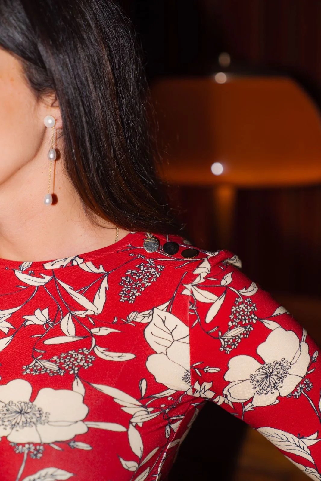 – Manches longues légèrement évasées avec 3 boutons dorés décoratifs sur le côté gauche du top.