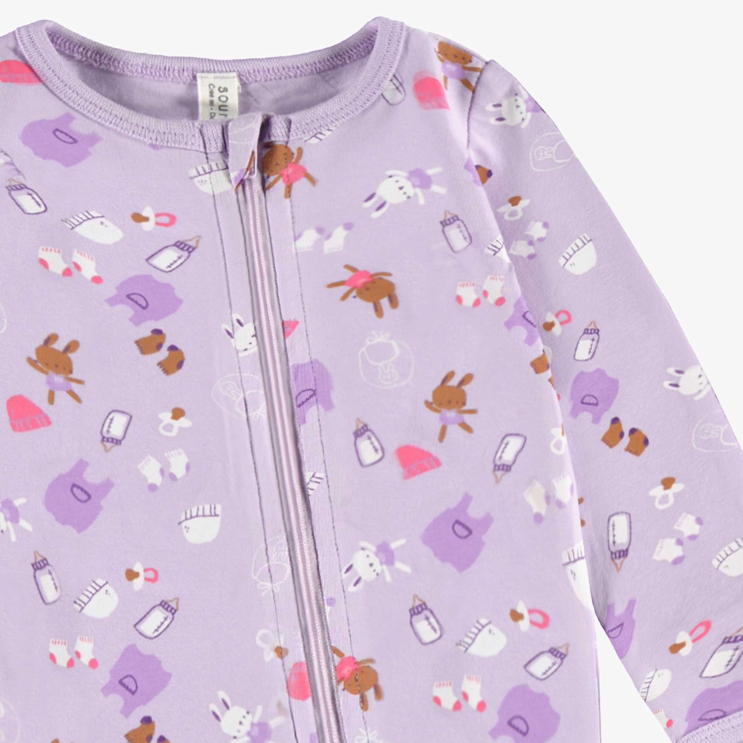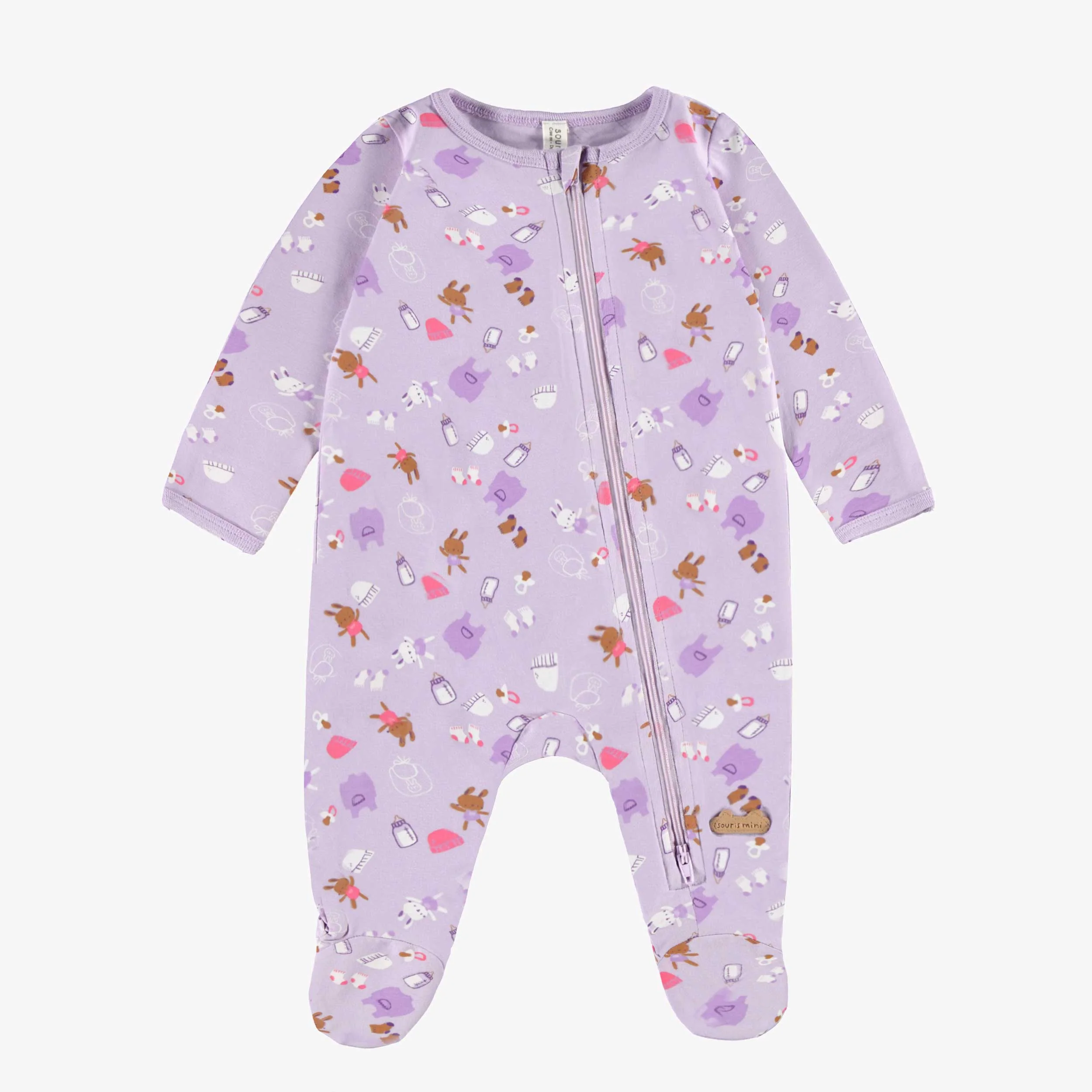 Barboteuse rose à motifs de tasses et fleurs, naissance