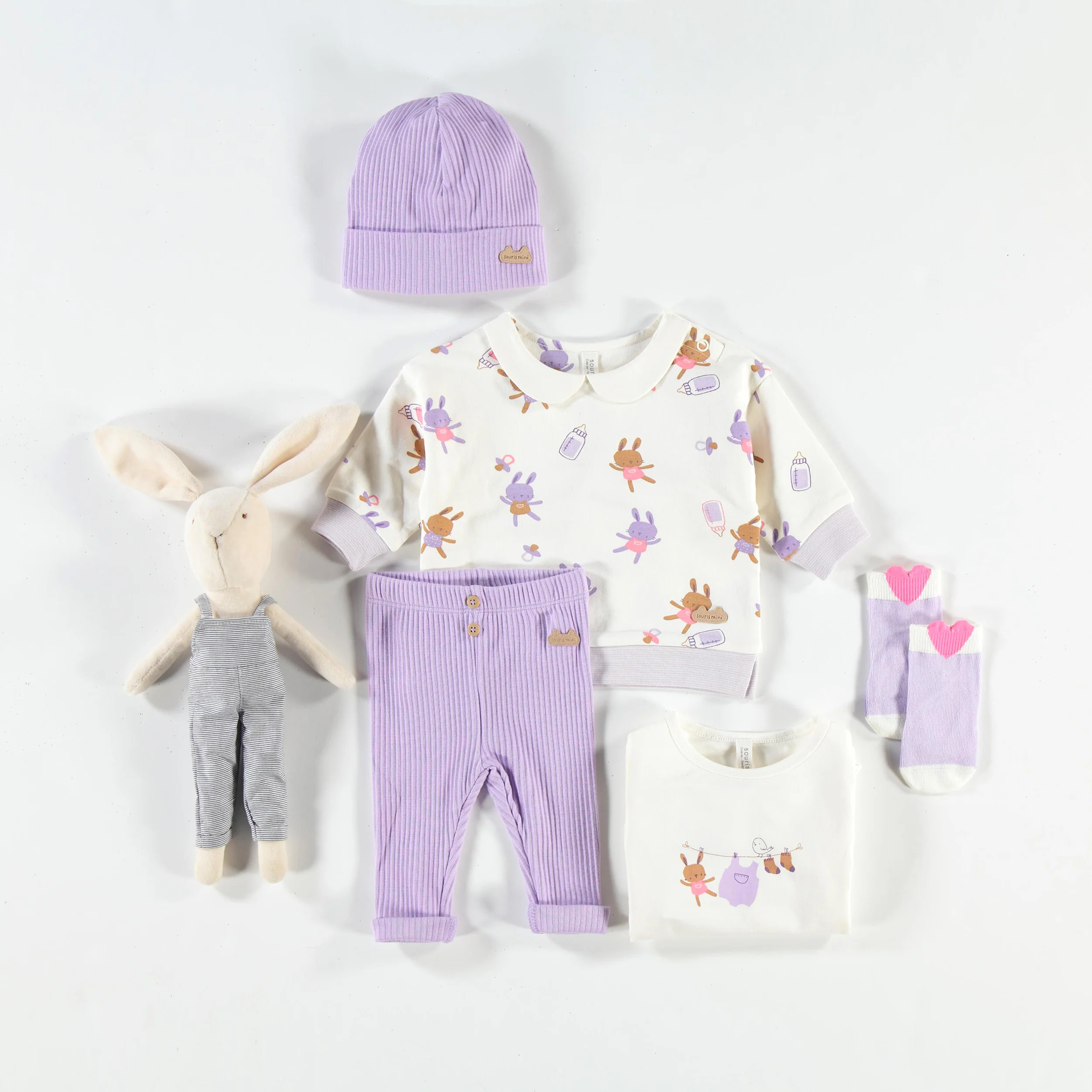 Barboteuse rose à motifs de tasses et fleurs, naissance
