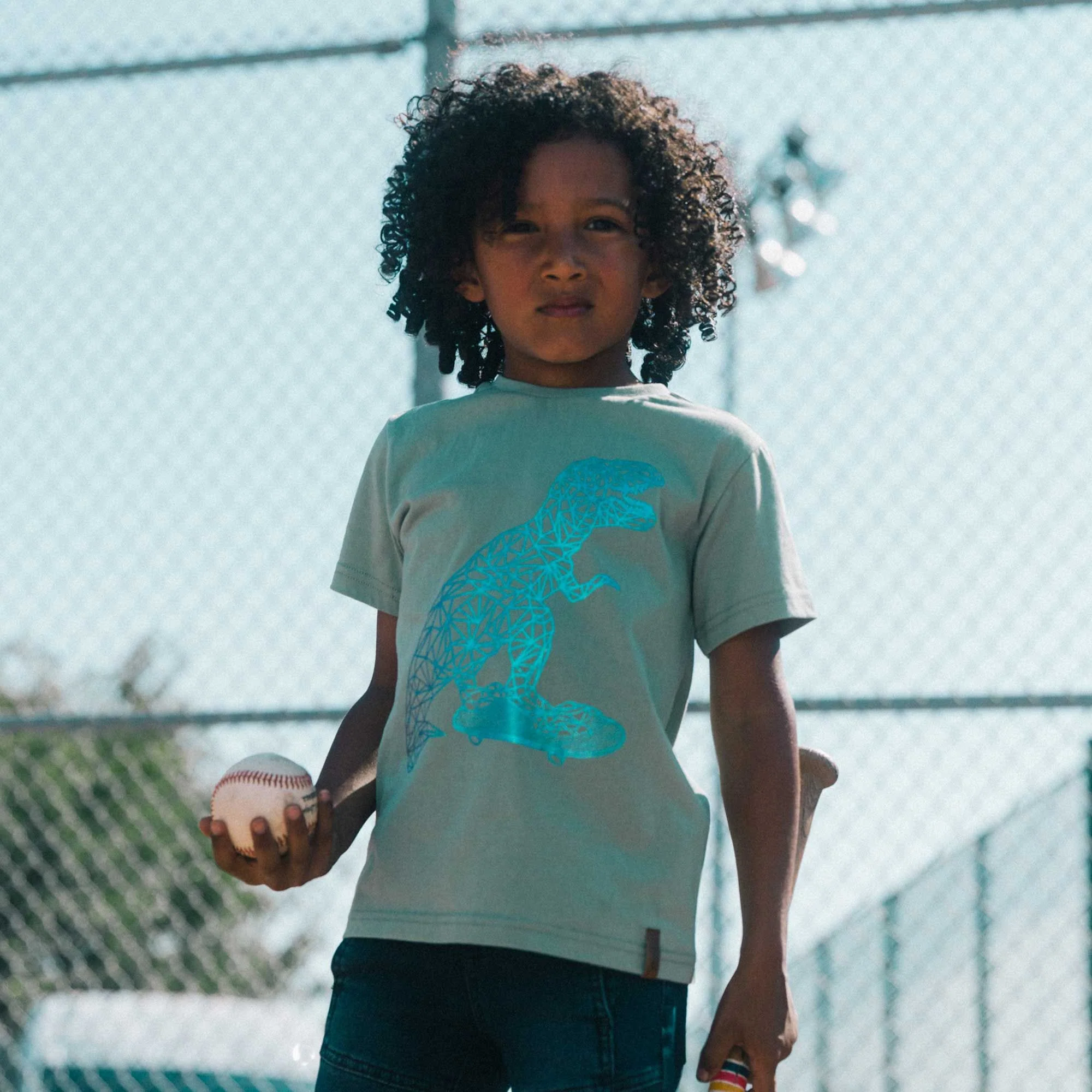 S’il aime les dinosaures, il va adorer notre t-shirt vert-de-gris avec imprimé graphique métallique . Ce t-shirt fantaisie est doux et confortable en coton léger, avec des manches courtes, une encolure ronde et un imprimé graphique distinctif sur la poitrine.