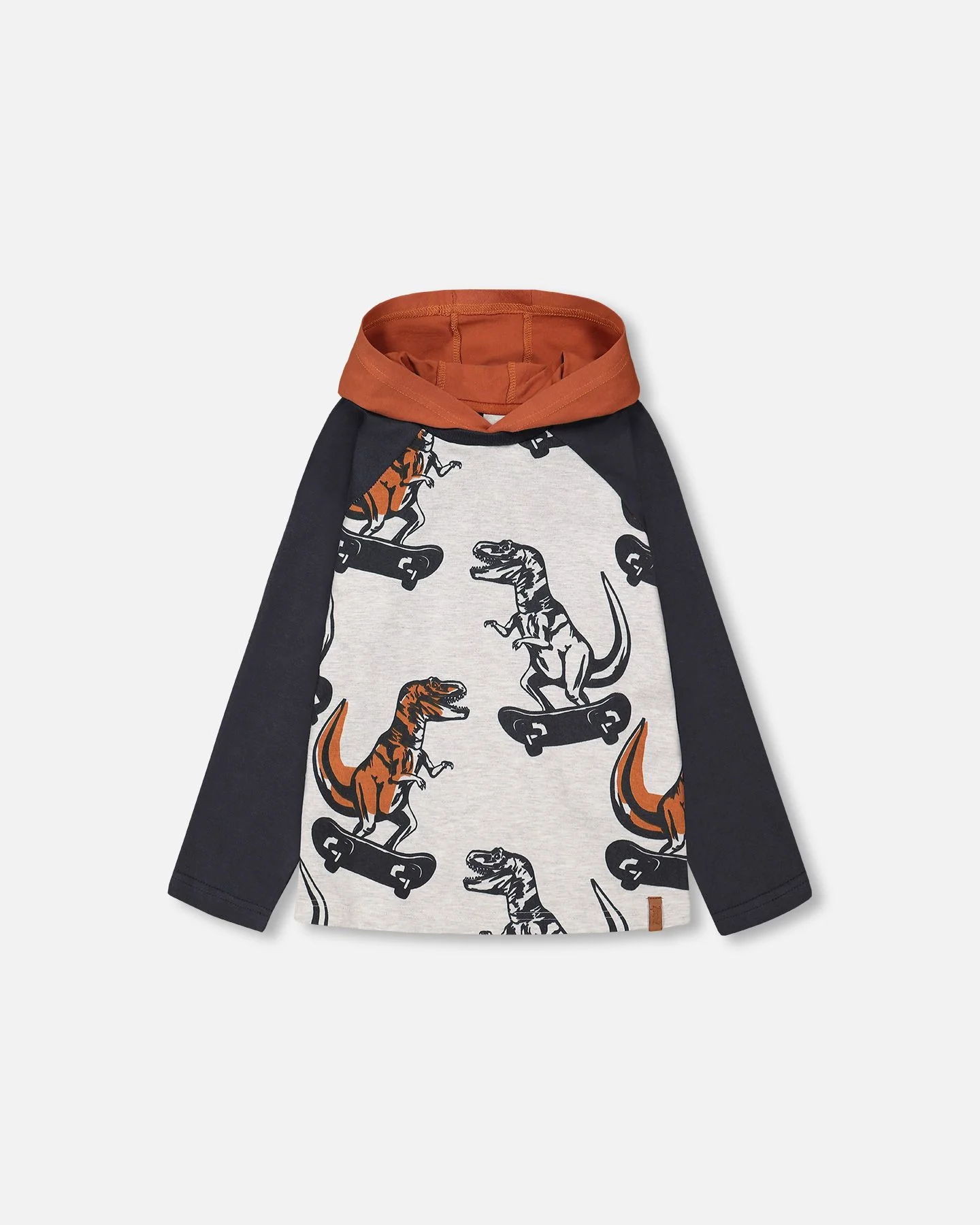 Avec ses Dinosaures qui font de la planche à roulette, notre tee-shirt en jersey à capuche beige chiné & gris ébène imprimé Dinosaures ajoute un style unique à la garde-robe de tous les petits garçons. En jersey de coton doux et extensible, ce tee-shirt présente des manches longues raglan contrastées, une capuche contrastée, un ourlet arrière arrondi et un grand imprimé sur toute la surface.
