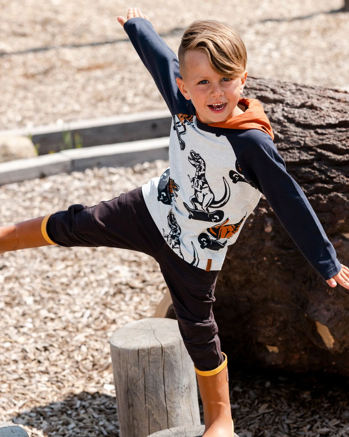 Avec ses Dinosaures qui font de la planche à roulette, notre tee-shirt en jersey à capuche beige chiné & gris ébène imprimé Dinosaures ajoute un style unique à la garde-robe de tous les petits garçons. En jersey de coton doux et extensible, ce tee-shirt présente des manches longues raglan contrastées, une capuche contrastée, un ourlet […]