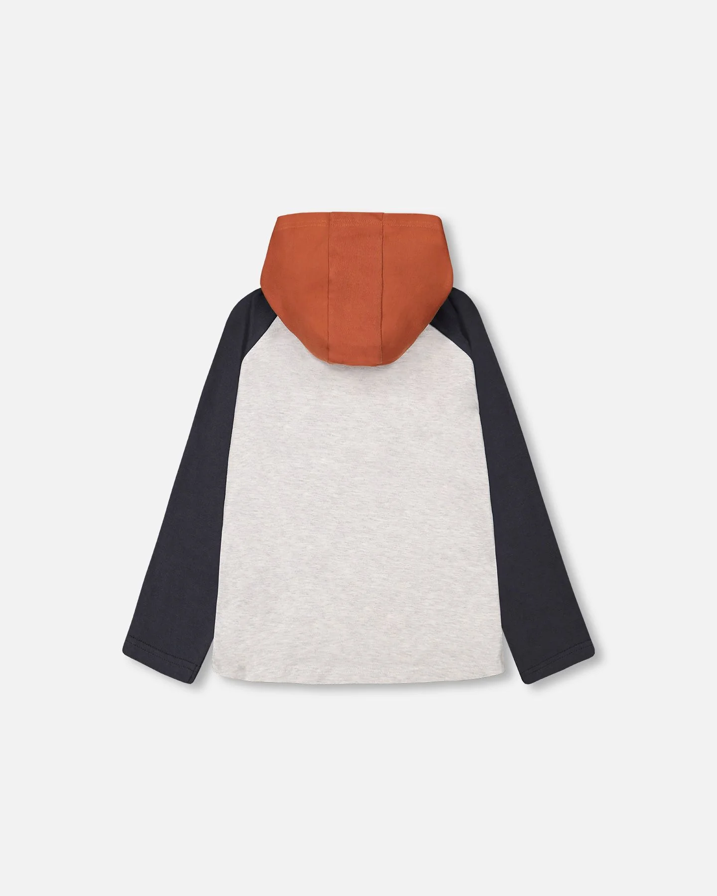 Tee-shirt à capuche beige chiné & gris ébène dinosaure F20U77