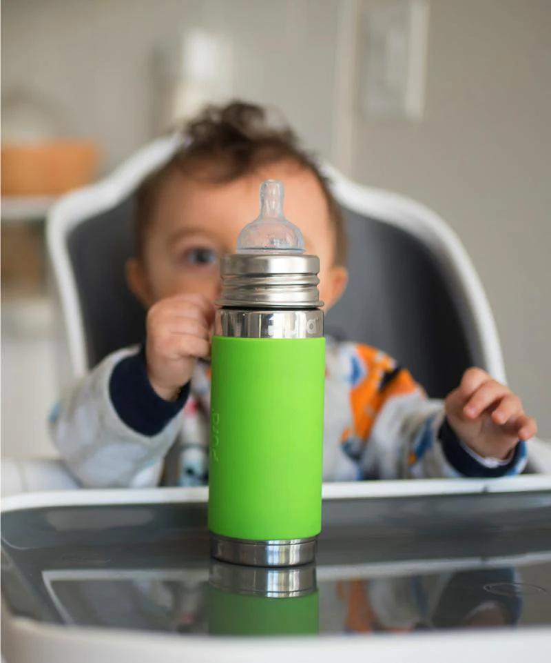 Biberon évolutif INOX Pura – tétine débit moyen 3m+ – 325ml (différentes couleurs) – à partir de 3 mois