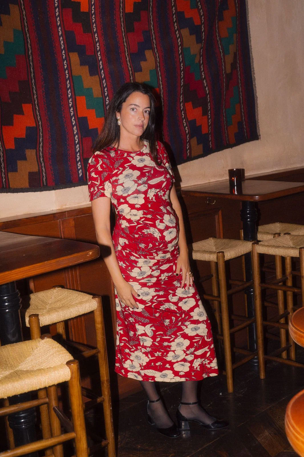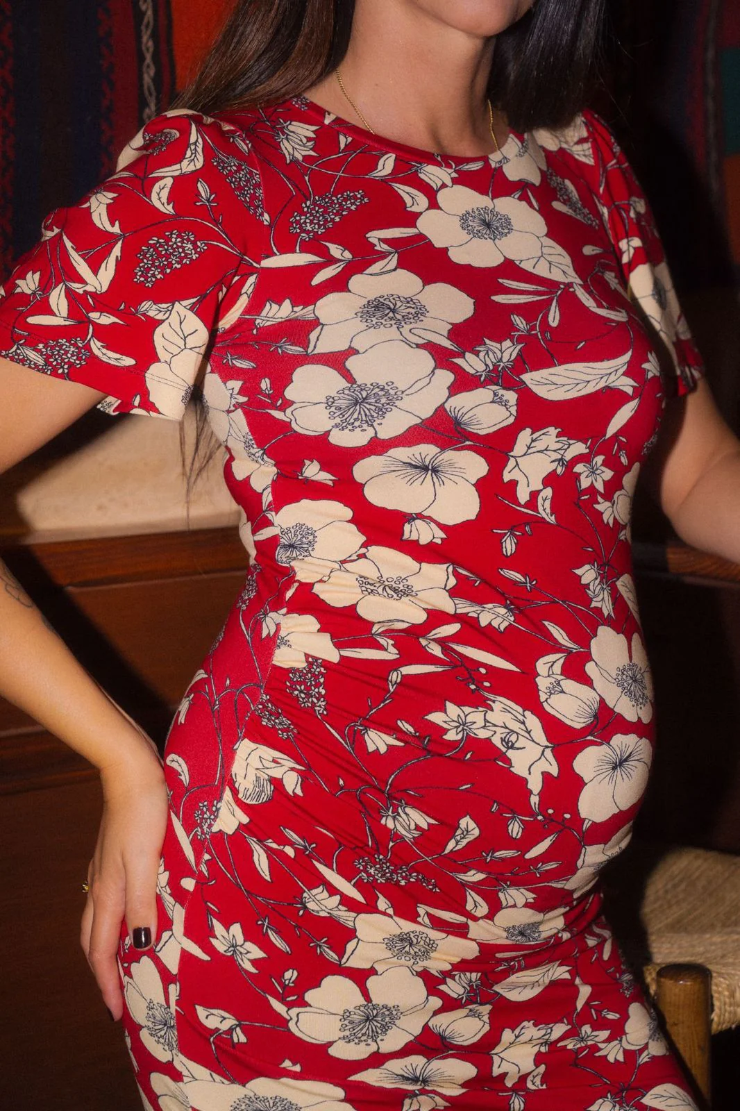 Theodora – Robe Femme Enceinte Capucine Rouge
