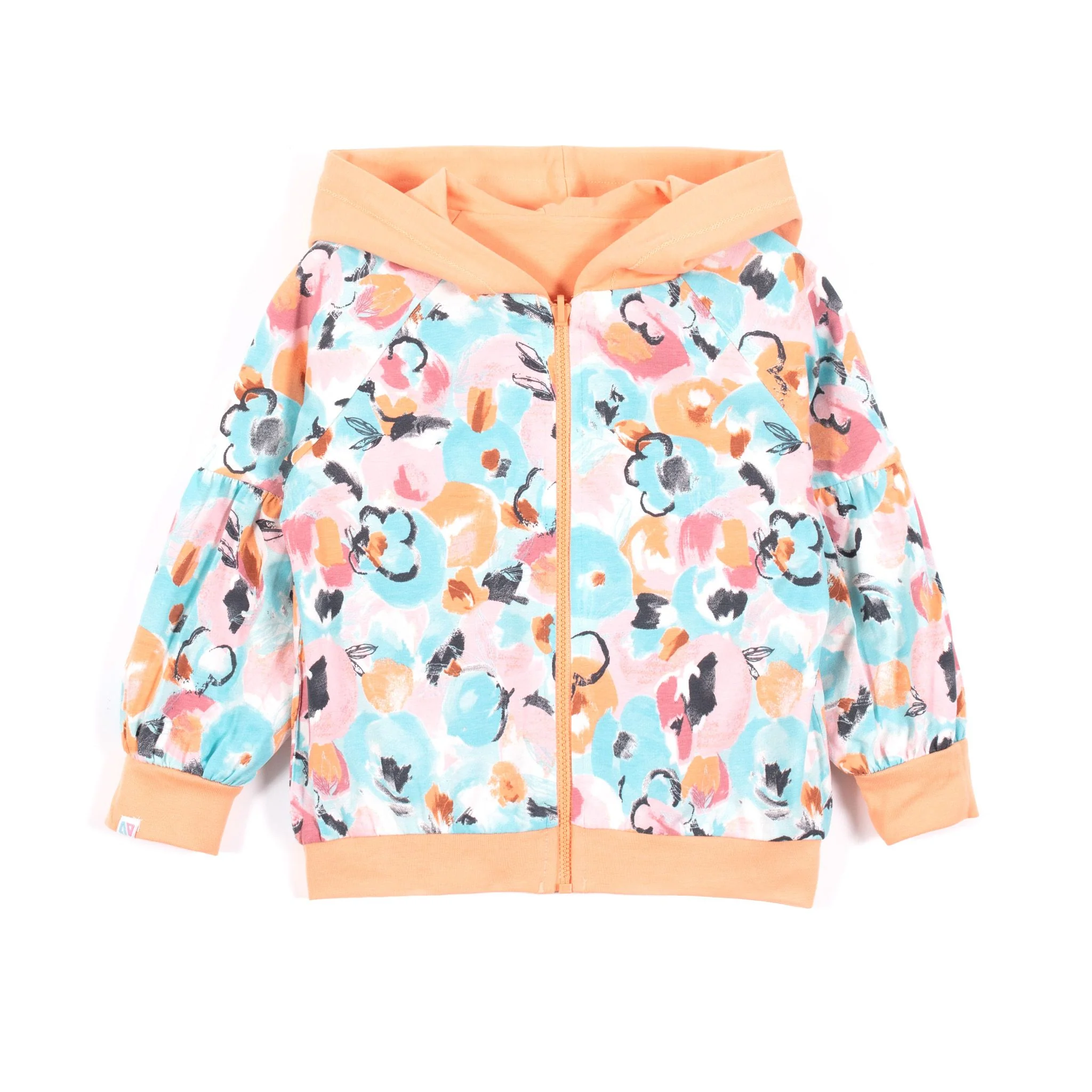 Veste à capuchon en jersey réversible. Modèle avec un côté imprimé et l’autre uni avec imprimé au buste.